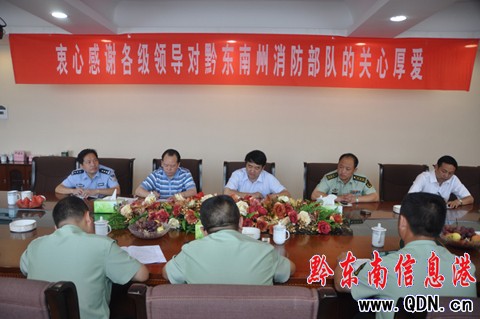 傅勤勇支隊(duì)長代表支隊(duì)黨委表示將盡快把廖書記和趙副總隊(duì)長的指示要求以及州委、州政府、總隊(duì)、州局領(lǐng)導(dǎo)的關(guān)愛之情傳達(dá)到全州公安消防部隊(duì),使全州消防官兵牢記囑托、不辱使命,以更加積極的姿態(tài)、更加有力的措施,更加奮發(fā)有為的精神狀態(tài),不斷提升部隊(duì)滅火救援實(shí)戰(zhàn)能力,繼續(xù)推進(jìn)打造黔東南消防鐵軍工作,為消防事業(yè)再譜新篇、再創(chuàng)輝煌;同時(shí),積極做好消防安全各項(xiàng)工作,筑牢“防火墻”工程,推進(jìn)“四個(gè)能力”建設(shè),努力在部隊(duì)全面建設(shè)中有所作為,在新農(nóng)村消防工作、滅火救援實(shí)戰(zhàn)能力、部隊(duì)正規(guī)化建設(shè)中走在全省前列,推動(dòng)全州消防工作和部隊(duì)建設(shè)再上新臺(tái)階,為建設(shè)平安和諧黔東南創(chuàng)造更加良好的消防安全環(huán)境作出新的更大貢獻(xiàn)。
