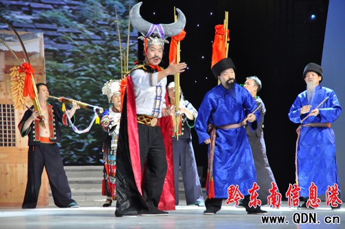 《一車救災(zāi)煤》和《白水牛》在29日晚職業(yè)組第一場(chǎng)比賽中聯(lián)袂出場(chǎng)。比賽中,《一車救災(zāi)煤》則以鮮明的凱里方言特色和極強(qiáng)的反腐倡廉警示效果,再加上詼諧、幽默的的諷刺表現(xiàn)手法,多次贏得了現(xiàn)場(chǎng)觀眾的陣陣叫好;而《白水牛》則以“嘎百福”苗族清唱?jiǎng)〉男问剑故玖嗣缱鍛蚯?dú)特的唱腔、樂(lè)曲以及旋律,讓觀眾在沉侵于苗族戲曲獨(dú)特魅力的同時(shí),感受了苗漢一家親、民族團(tuán)結(jié)、民族和諧的主題。最終,《一車救災(zāi)煤》獲得99.83分摘得職業(yè)組非戲曲類銅鼓獎(jiǎng);白水牛得到99.60分榮獲職業(yè)組戲曲類的優(yōu)秀獎(jiǎng)。