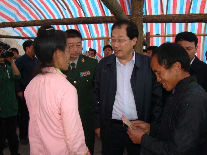 11月9日,省人民政府副省長辛維光在副州長姜學(xué)東的陪同下來到八開鄉(xiāng)高同村看望慰問受災(zāi)群眾,檢查指導(dǎo)災(zāi)后重建工作,并為受災(zāi)群眾送去了慰問品和慰問金,使受災(zāi)群眾感受到黨的溫暖,政府的關(guān)懷。