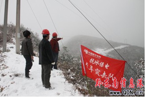 凱里供電局團委發(fā)起“團員青年抗冰保電”行動,共建立41支青年突擊隊。500千伏施黎甲乙線作為“西電東送”、“黔電送粵”大動脈,由于持續(xù)低溫和凝凍天氣500千伏施黎甲乙線已積上了厚厚的冰覆冰,部分線路覆冰超過30mm。對于在500千伏凱供施秉變抗冰保電青年突擊隊員的心里就是一場意志與冰雪、熱血與寒風、激情與寒夜的抗爭。他們用激情、熱血、堅忍和高度的責任感,斗嚴寒,除冰魔,這支13人的青年突擊隊經(jīng)過38個多小時連續(xù)奮戰(zhàn),順利完成了500千伏施秉-黎平-桂林線路融冰,保住了這條通往長江三角洲和珠江三角洲的大動脈,他們彰顯團員青年“眾志成城、頑強拼搏、不勝不休”的精神風貌。