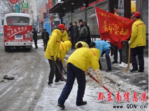 青年突擊隊抗冰雪保民生,沖鋒在第一線