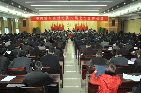2月16日至17日,為期兩天的黔東南州紀委七次全體會議勝利閉幕。州委書記廖少華作講話,州委常委、州紀委書記王德玉代表州紀委常委會作《工作報告》。會上,州委書記廖少華與各縣、市委書記簽訂2011年黨風廉政建設責任書。各組討還論了廖少華書記的重要講話和全會《工作報告》、《決議(草案)》。州四大班子黨政領導李飛躍、羅亮權、楊正明、韓卉、馮仕文、張仕福、黃遠良、耿生茂、楊宏遠、朱元俊等出席會議。