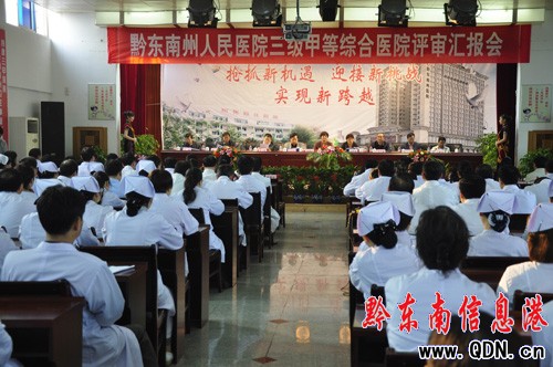 11月22日,州人民醫院召開創三級甲等綜合醫院評審匯報會,貴州省衛生廳廳長王建富、州人民政府副州長劉曉春、州政協副主席吳榮陽等出席評審匯報會,州醫院領導班子成員及全院中層干部、護士長參加會議并陪同評審。會議由省衛生廳副廳長周惠明主持。