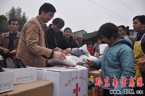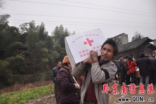 2012年1月13日,天柱縣紅十字會(huì)北嶺村貧困群眾發(fā)放捐贈(zèng)物質(zhì)