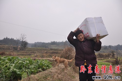 1月13日,天柱縣白市鎮(zhèn)北嶺村83歲老人楊紫香扛起包裹高興回家