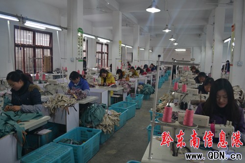 圖為三穗縣千慧服飾有限公司車間工作現場