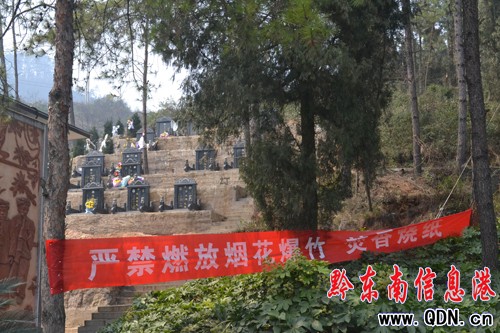 圖為凱里市郭家坪公墓現場禁放煙花爆竹、焚香燒紙標語