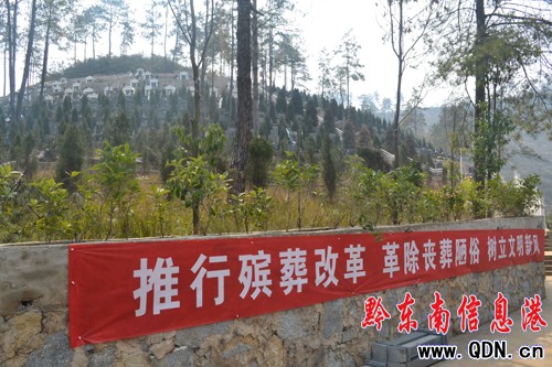 圖為凱里市郭家坪公墓現場鼓勵人民群眾推行殯葬改革標語