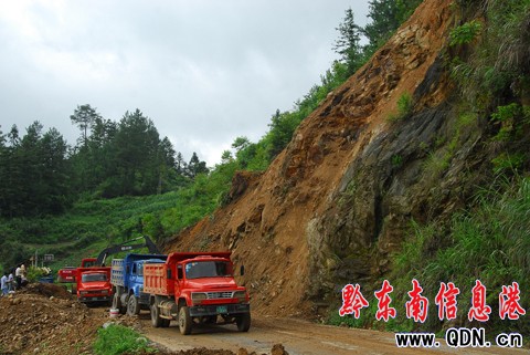 本港訊 (特約記者 黃曉海 攝影報(bào)道)連日來,因連續(xù)降雨,致使丹寨縣境內(nèi)多處公路發(fā)生滑坡,道路交通中斷。災(zāi)情發(fā)生后,有關(guān)部門馬上組織人員和工程車輛趕到現(xiàn)場(chǎng)進(jìn)行搶修,當(dāng)日已經(jīng)將道路全部疏通。