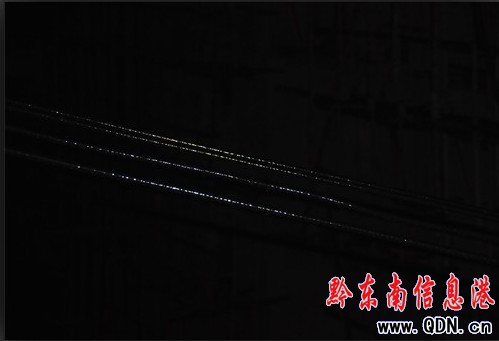 俯拍被雨水打濕的電線