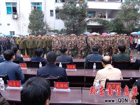 本港訊 (記者 楊驥)12月12日,榕江縣2009年歡送新兵入伍儀式在該縣人民武裝部隆重舉行。62名青年通過了層層選拔,成為了驕傲的人民子弟兵。他們即將踏入綠色軍營,為建設祖國、守護家園奉獻他們的青春和力量。