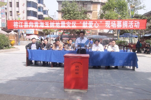 據(jù)黔東南州人民政府網(wǎng)消息“一方有難,八方支援”,為支援青海玉樹地震災(zāi)區(qū)抗震救災(zāi)、重建家園, 4月27日下午,榕江縣在縣街心花園舉行向玉樹災(zāi)區(qū)獻愛心捐贈儀式。縣委書記白躍軍、縣長肖克、縣人大常委會主任楊勝侯、縣政協(xié)主席葉東山等縣四大班子領(lǐng)導(dǎo),縣直部門干部職工及愛心企業(yè)、市民2000余人踴躍參加了捐贈儀式,向災(zāi)區(qū)人民奉獻愛心。