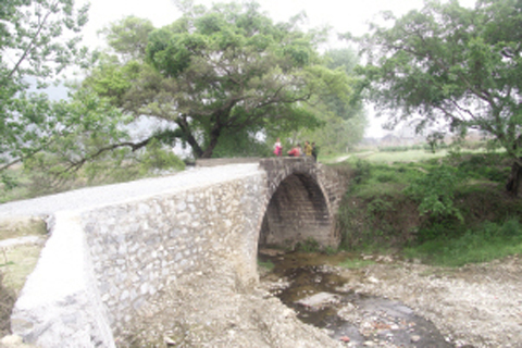 迎龍橋位于國(guó)家級(jí)風(fēng)景名勝區(qū)榕江苗山侗水風(fēng)景區(qū)核心區(qū)三寶侗寨河岸邊古榕樹(shù)群中,過(guò)去是榕江通往忠誠(chéng)、寨蒿以及黎平縣和劍河縣等地的必經(jīng)要道,雖然隨著交通建設(shè)的發(fā)展,此橋已失去往日的作用,卻為三寶侗寨景區(qū)增添了一道亮麗的風(fēng)景線,是榕江縣文物點(diǎn)之一。由于受到洪水沖擊,下方引橋嚴(yán)重坍塌,3米寬的路面只剩約15厘米的路面與橋身連接,露出了單薄的石拱,不僅危及過(guò)往行人,一旦洪水暴發(fā),石拱橋?qū)⒂斜淮輾У目赡堋?BR>
