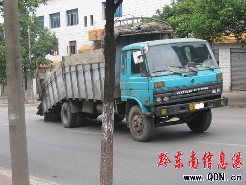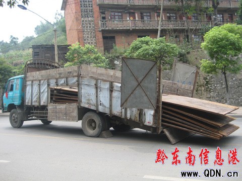 主人為賺錢狂載鐵板 大貨不堪重負折腰路中(圖)