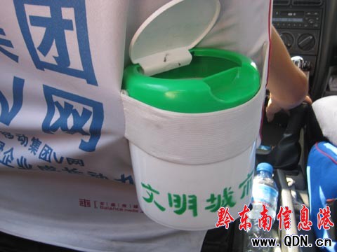 在祖國60華誕來臨之際,為了營造一個文明、衛生、和諧的凱里城市環境,凱里市客管局向每輛出租車免費發放一個綠色環保垃圾桶,杜絕了乘客因出租車內無處裝垃圾而亂丟車內或甩出車外的現象。