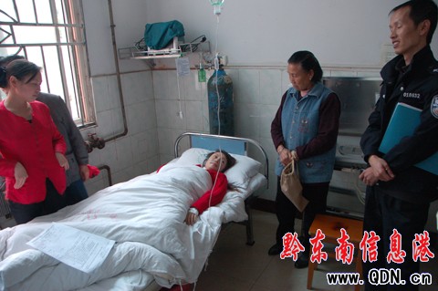 “我什么也記不得了……”在黔東南州醫院急診室,躺在病床的被搶女子----23歲的小芳(化名)對記者說。據與小芳同行的親友介紹,當時小芳正在一邊行走一邊打電話,歹徒竄上后,在搶走電話的同時,用另一只手猛掐小芳頸部,并將她壓在地上拖拽幾米遠!翱赡苁谴跬接昧^猛,加上受到驚嚇,小芳很快口吐白沫不省人事!庇H友說,這突發的一幕,令他們惘然所措。很快,回過神后,兩名親友迅速沖上前,將這名男子“拿翻”。接著,接群眾報警的民警迅速趕到現場,將這名男子帶進了附近的大十字派出所。