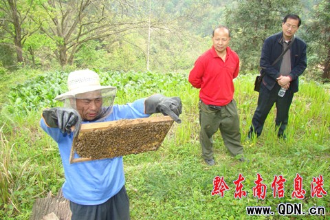 本港訊 (特約記者 姚學茂 攝影報道)天柱縣坌處鎮地沖村蜂農周禮昌通過30多年的努力拼搏,靠著吃苦耐勞、勇于開拓、自強毅力的韌勁,摸索出一套治療蜜蜂病變、提取蜂蜜、繁殖蜂王等過硬的蜜蜂養殖技術。現在,周禮昌養有蜜蜂90多箱,年純收入6萬多元,成為遠近聞名的蜜蜂養殖大戶和蜜蜂養殖“土專家”。