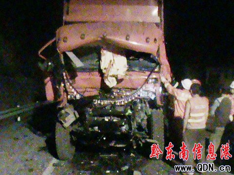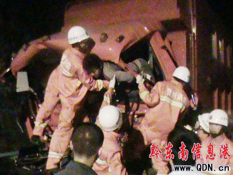 凱麻高速凌晨兩車追尾 大貨車頭被"撞平"(圖)