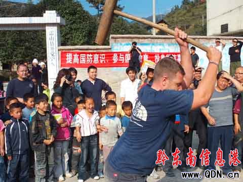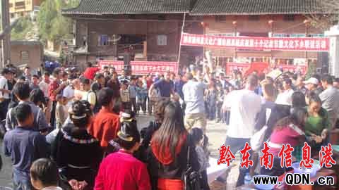本港訊 (記者 許世芳 攝影報道)11月7日下午,黔東南州文化廣播電視系統到雷山縣西江鎮開覺村開展文化下鄉活動,期間舉辦了拔河、打糍粑、文藝演出、苗族刺繡展示等活動。