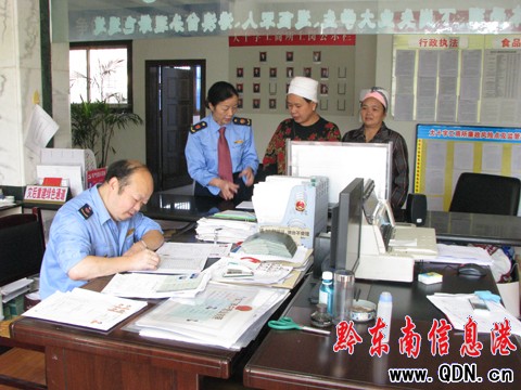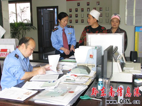 本港訊 (特約記者 楊衛中 攝影報道 )今年以來,凱里大十字工商所為了顧全大局,而專門配備了兼通苗、侗語的干部為苗、侗族群眾提供了“服務”。這樣一來,在語言溝通上更加方便辦事,同時也拉近了管理者與被管理者的距離。