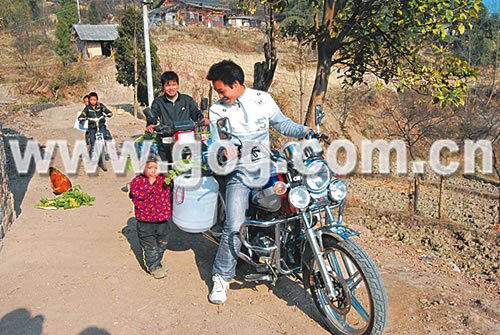 據金黔在線 黃平縣重安鎮馬雞村地處半山腰上,每年秋收之后至次年3月,這里的水源干枯,300村民以及大量牲畜飲水困難。今年村中僅有的幾塊水田幾乎被抽干了,村民們只得騎著摩托車,到3公里外的重安街上去找水喝。