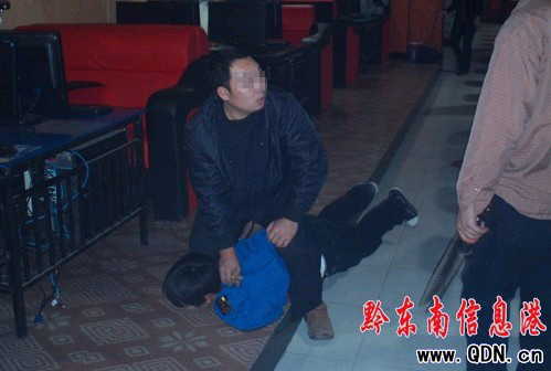 網(wǎng)吧內(nèi)古惑仔掄刀追砍 便衣民警抓個正著(圖)