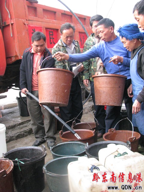 本港訊 (特約記者 楊衛中 攝影報道)近日,隨著旱情日益加劇,旁海鎮21個行政村,81個村民小組,5879戶,31278余人飲水困難,為幫助群眾共渡難關,該鎮黨委、政府積極組織專用車輛為全鎮21個飲水困難村送去“責任水”,特別是旱情較重的大溪、聯鞏、朵基、卡房、大豐、岔河等6個村(受災戶數為1523戶,7128人),為此旁海鎮申請了市防訊辦資金支持,由旁海鎮防訊辦組織人員每天輪流義務為以上村送水。自3月初開展此項工作以來,義務送水共計860噸,戶均每天200水斤,保證了村民的基本生產用水,及時給村民們“解渴”,確保渡過難關。