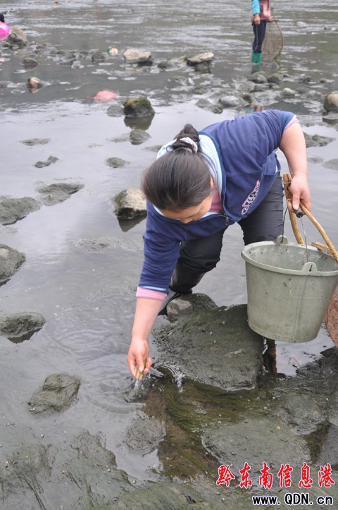 本港訊 (記者 劉仙 攝影報道)3月24日記者來到清水江凱里火車站河段附近看到,不少當地村民在河中撿拾死魚。據悉,昨日,清水江里突然出現大量死魚,結果掀起了一股撿魚熱潮。