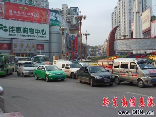 本剛訊 (記者 廖強 攝影報道)26日下午18時左右,由于正是下班高峰期,凱里市大十字出現了嚴重的汽車緩行現象,記者在現場看見,一輛輛汽車排成了“長龍”,把大十字堵了個水泄不通。