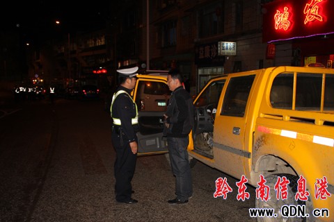 據悉,為進一步凈化全市道路交通環境,堅決遏制酒后駕駛交通違法行為高發勢頭,結合當前全國開展的“文明交通行動計劃”, 2010年4月1日19時至23時,凱里市公安局交警大隊以公安部111號令頒布實施為契機,在轄區路段開展整治酒后駕駛違法行為的專項行動。在整治過程中,參戰民警不僅對過往車輛進行檢查,同時組織警力對飯店、餐館、酒吧、娛樂場所周邊進行巡邏監控,及時發現和勸阻飲酒后欲駕駛車輛的人員,嚴查酒后駕駛的交通違法行為。