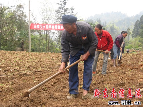 遠(yuǎn)遠(yuǎn)望去,蒼山青綠,炊煙繚繞的尚寨青杠林組,顯得幾分寧?kù)o。走近村口時(shí),人們卻趕著牛、扛著鋤頭向著希望走來(lái)。青杠林,在今年干旱的影響下,是該鄉(xiāng)旱災(zāi)最為嚴(yán)重的地方,如今已找不到一塊秧田播水稻種。面對(duì)大季作物--水稻種子播不下的困境,鄉(xiāng)黨委、政府急村民之所急,想村民之所想。積極尋找方法,抗旱災(zāi)、保民生、促發(fā)展,經(jīng)多方求證,在干旱缺水地方可推廣實(shí)施水稻旱育稀植栽培技術(shù)。遵循農(nóng)業(yè)生產(chǎn)“抓好一時(shí),保障一季”的規(guī)律,及時(shí)組織駐村干部、村民開展水稻旱育稀植現(xiàn)場(chǎng)培訓(xùn)會(huì)。