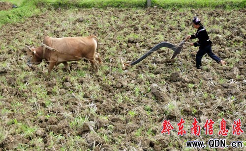 凱里市三棵樹鎮償朗村下寨苗族婦女在干枯的稻田里耕作