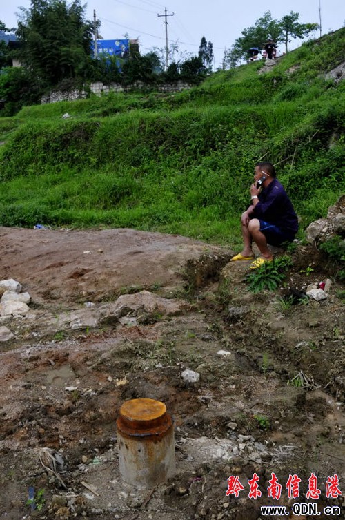 凱里市三棵樹鎮償朗村委主任陳文在已經打出水的井旁發愁
