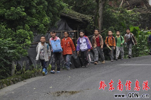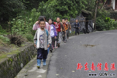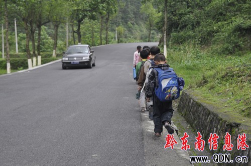 三穗:小學生上學自覺走公路邊線(圖)
