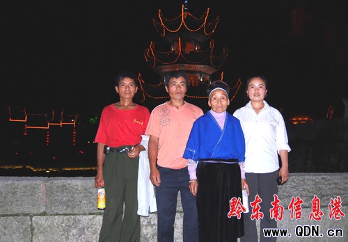 “現在的鎮遠縣,城市更大了,比以前更漂亮了。劃龍舟和以前差不多,船多,看熱鬧的人也多。”王正英說。70年后還能到古城鎮遠來看一看,老人說她滿足了,這一輩子不白過。(圖為王正英和兒女們在鎮遠祝圣橋上合影留念,圖片由王正英老人的兒女們提供)