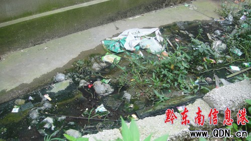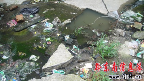 據(jù)附近居民介紹,這個情況已經(jīng)有兩年之久了,由于化糞池堵塞,水溝邊這棟樓房的居民平日的生活垃圾、糞水排下來后,就會囤積在這里,然后逐漸地滲到路中間來。下雨天的時候,過往行人都無處下腳,只能用木板、石塊等東西墊在糞水上踩過。