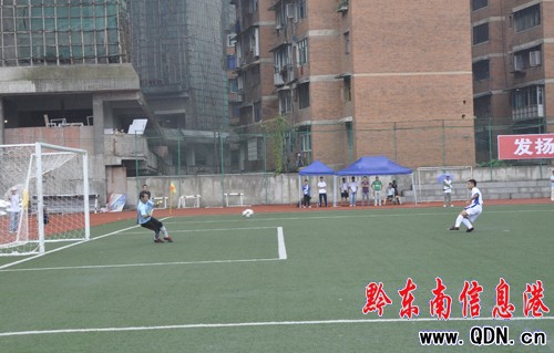 一分鐘過后,天柱隊右路開出角球,中路包抄的隊員被凱里隊放倒,裁判判罰了點球,天柱隊將球罰進,1:3。