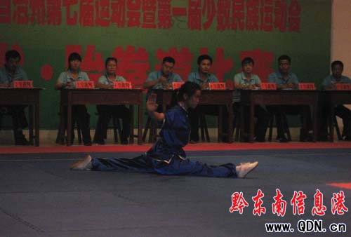 經(jīng)過長達3個多小時的比賽,最后由黃平隊的舒龍江、天柱隊的劉彩英分別獲得成年組男子和女子拳術的冠軍,由天柱隊的楊致祥、凱里隊的陳誠分別獲得青年組男子和女子拳術的冠軍。