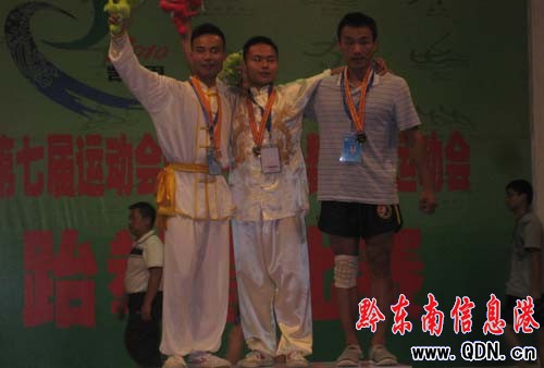 成年男子組前三名:舒龍江(冠軍、中)袁洪波(亞軍、右)楊再輝(季軍、左)