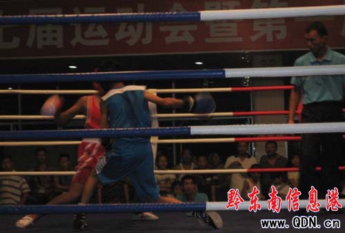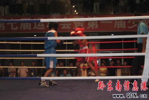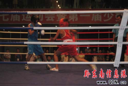 本港訊 (記者 廖強 攝影報道)7月22日晚,黔東南州第七屆運動會暨第一屆少數民族運動會拳擊比賽在城南客車站開打,本次拳擊賽共有8個代表隊42名運動員參加角逐,共將產生19快金牌。