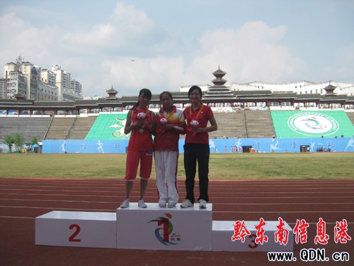 在女子800米甲乙兩組比賽中,各女中豪杰你追我趕,最后凱里的楊巧妹以2′37″20成績獲得女子乙組第一名;黎平的石彩芳以2′33″00成績獲得女子甲組第一名。
