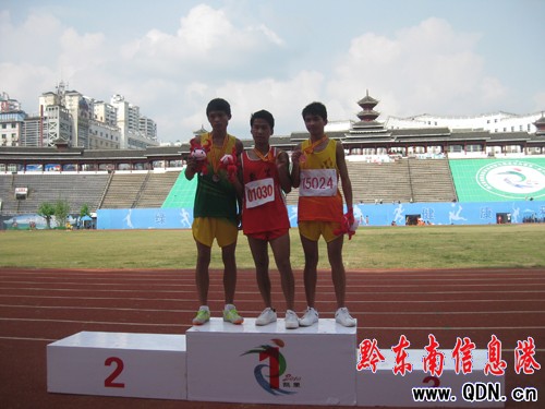 男子甲乙兩組比賽中,各參賽隊員激烈奔跑,最后,凱里龍登弟以2′11″70成績獲得男子乙組800米第一名;劍河龍安鑫以2′07″10成績獲得男子甲組第一名。