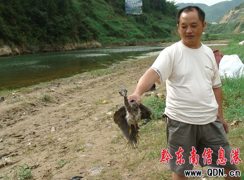 本港訊 (王子明 記者 李麗娟 攝影報道)8月20日,在雷公山山麓丹江河畔貓貓河口處的河塘里一釣魚愛好者捉到一只大鳥,經保護區專業人員鑒定是海南虎斑鳽,隨即被送往保護區野生動物救護中心飼養場飼養。