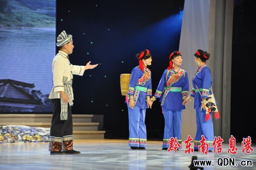 本港訊(本港特派記者 楊驥 貴陽攝影報道)27、28日晚,“中天城投杯”2010多彩貴州小品大賽戲曲、非戲曲類的非職業組進行了決賽階段的比賽,我州選送的作品《小江渡口》在27日晚第四個出場,獲得98.79分,最終位列戲曲類非職業組第三名,與排名的2的遵義地區選送的《看病》一起獲得銀瀑獎,金黔獎被黔南州選送的《競爭》奪走。