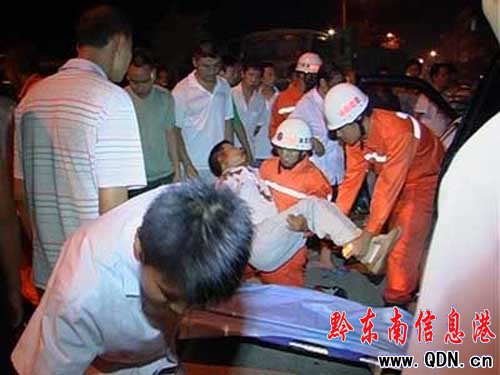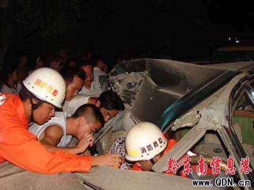 本港訊 (王淵博 特約記者 張正特 攝影報道)8月29日晚從江中縣城北上新區鼓樓廣場旁發交通事故,有兩人被困車中。從江中隊立即出動8名官兵,一輛特勤車趕往現場,經過20余分鐘的救援,成功將兩名被困人員救出并送往醫院。