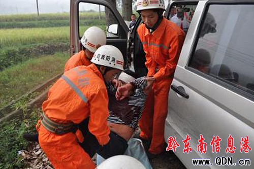 兩車相撞司機(jī)被困 天柱消防成功救出(圖)