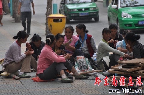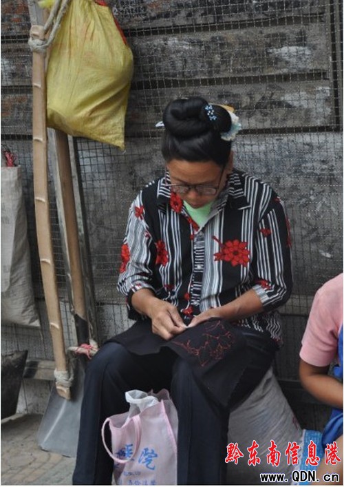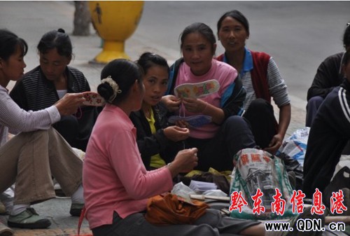本港訊 (記者 劉仙 攝影報道)近日,記者在凱里小十字看到,一批坐在街邊等著干零活的婦女,人們稱之為“等活婦女”。在沒有雇主雇請時,她們便坐在街道旁邊等候,當然,不能讓時間白白浪費掉,為此,她們就拿出隨身攜帶針線和布匹,利用等活的時間做刺繡或者納鞋墊。