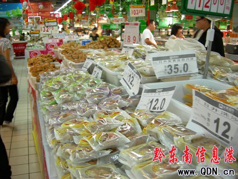 據(jù)某超市月餅專柜旁的銷售人員表示,從近期上架銷售的情況來看,大多市民主要是以購買散裝月餅為主,賣場(chǎng)上300—400元左右的禮盒幾乎很少有人問津,吸引更多個(gè)體消費(fèi)者目光的依然是100元左右的實(shí)惠禮盒。