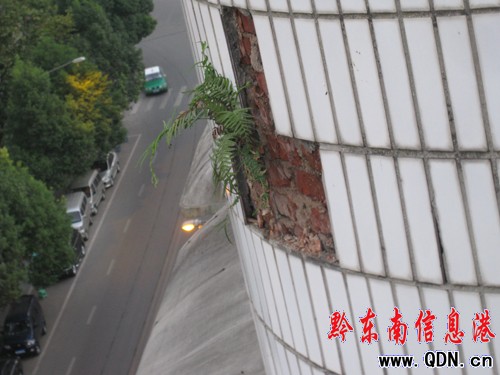事發后,記者趕到位于凱里市民族歌舞團對面的事發處看到,被瓷磚砸中的地面上散落著不少瓷磚碎片,有的如拳頭般大,有的則小如指頭。