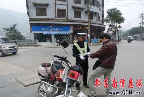 本港訊 (特約記者 唐光新 攝影報道)從10月18日起,黔東南州公安局交警支隊從支隊機關、凱里市交警大隊、麻江縣交警大隊抽出20名民警與鎮遠縣交警大隊聯合對鎮遠縣開展為期一周的集中開展突出交通違法行為專項整治行動,采取有效措施加大對無牌無證交通違法行為的打擊力度,保持依法嚴管的高壓態勢,有效地震懾了無牌無證違法者的囂張氣焰,保障了轄區道路的暢通和安全。